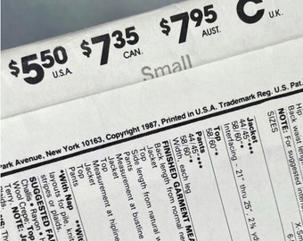 Vintage 1987 Mccalls 3025 Sewing Uncut Pattern Size Small Etsy